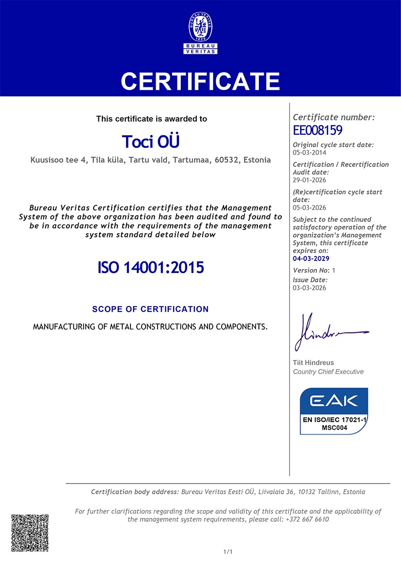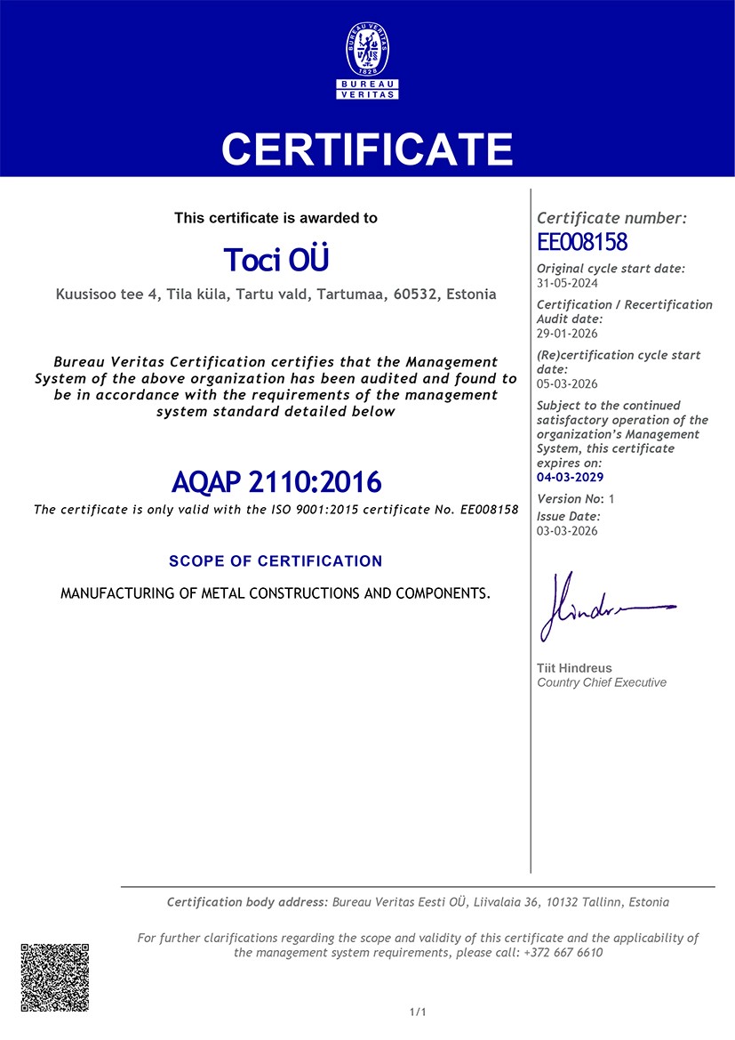 "The advantage of Toci services is fastness and flexibility in the production of solutions. This is achieved by working together on-site and constantly developing our production, engineering, and design capabilities."