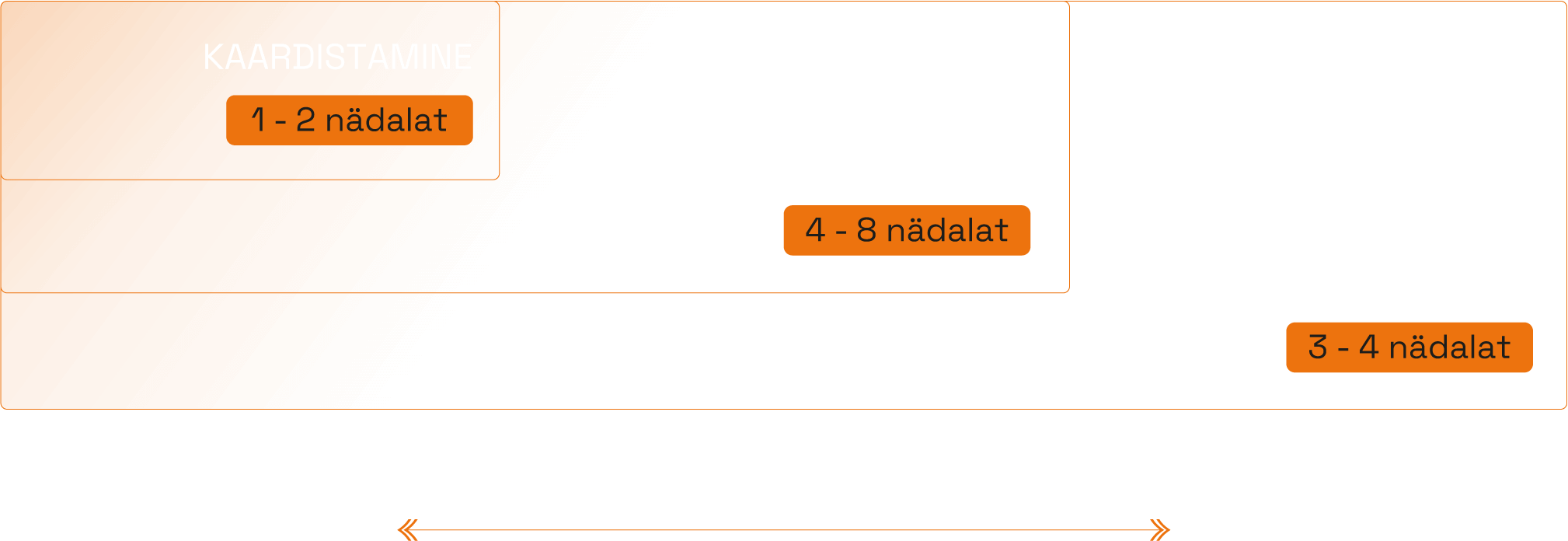 * Projekti pikkust mõjutab oluliselt kliendipoolse lähteülesande ja selle sisendi kättesaamise kiirus ning muutumine ajas. Mida täpsemalt paigas on lähteülesanne, seda kiiremini liigub projekt.